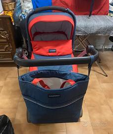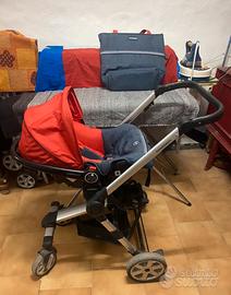 Sul telaio in alluminio si possono montare, in modo pratico e veloce: la navicella, l'ovetto omologato i-Size che ha la funzione di seggiolino auto per i primi mesi, la seduta del passeggino reversibile fronte strada o fronte mamma.