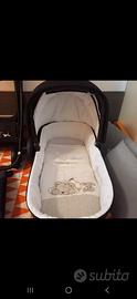 Vendo Trio Foppapedretti Divo in ottime condizioni composto da navetta con coprigambe e materassino,Ovetto con riduttori con base isofix per auto, passeggino con coprigambe e borsa coordinata.