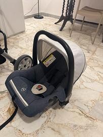 Bellissimo trio usato davvero poco e solo in casa. Ad esempio il passeggino non l’ho mai usato. Unico difetto telaio ruote un po graffiato perché è stato troppo tempo chiuso nel box. Pagato 480€ vando a 200€ con giostrina