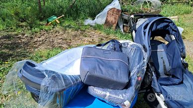 Trio Foppapedretti usato poco e perfettamente funzionante completo di base da macchina per l'ovetto e borsa porta accessori