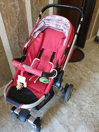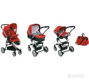 Trio Foppapedretti mod. TRES colore rosso, in ottime condizioni, usato pochissimo, completo di riduttore per ovetto, telo antipioggia e sacca coprigambe per passeggino.