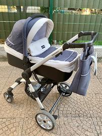 Composto da: navicella, ovetto con base per trasporto auto, passeggino, coprigambe, parapioggia e borsa capiente.