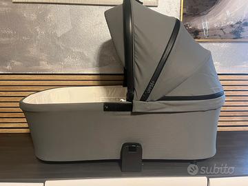 Il trio con 6 mesi di vita Comprende: Cesta con materassino Ovetto con con appositi adattatori (comprato a parte) Passeggino