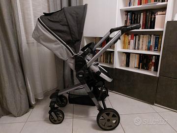 Passeggino moderno reversibile fronte mamma/fronte strada manico unito A 4 RUOTE, navetta e seggiolino auto omologato gruppo 0+, dalla nascita a 13 kg (circa 15 mesi)