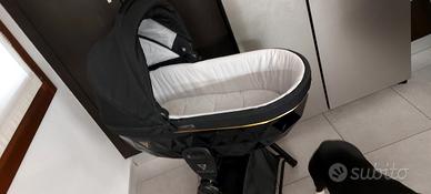 trio gemellare composto da ovetti , navicelle e passeggino e supporti per navicelle ed ovetti comodi da tenere dentro casa senza portare dentro anche le ruote .