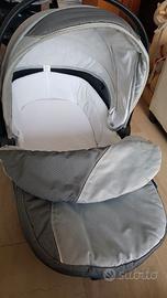 Trio Elixo Zero grigio e bianco della Giordani è reversibile, con la seduta fronte mamma o fronte strada.