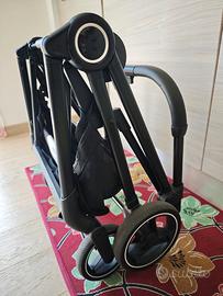 CONSEGNA A MANO GENOVA E ZONE LIMITROFE Trio Giordani g-light navy con struttura con chiusura a libro, da chiuso sta in piedi da solo. Chiusura e apertura agili senza necessità di piegarsi. La struttura può essere trasportata nel bagagliaio di un' auto piccola come Toyota Aygo. Le 4 ruote hanno ammortizzatori e cuscinetti a sfera per la massima facilita' di guida anche con una mano sola. Il freno è centralizzato. II maniglione rivestito in ecopelle. Capiente cestello sottostante. Doppi adattatori per navicella e seggiolino auto. Il trio è composto da tre ulteriori pezzi: -ovetto seggiolino auto no isofix, non necessita di base ed è facilmente spostabile da un' auto all' altra. Si fissa contro senso di marcia con la cintura di sicurezza. Dotato di riduttore. Adatto dalla nascita. -navicella con ampia capottina estensibile e aletta antivento sulla copertina. La navicella si compatta e si piega ottenendo un ingombro molto ridotto. -passeggino mai utilizzato ancora imballato. Comprensivo di istruzioni. Ottime condizioni pari al nuovo. Colore blu Scrivere per ulteriori foto/info.