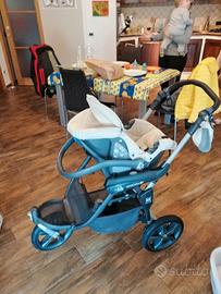 trio infanzia comprensivo di navicella, ovetto e passeggino. color beige.