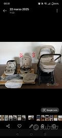 L'Inglesina Aptica è stato il modello di lancio di questa fortunata linea, presentato come una fusione tra l'eleganza classica del Trilogy e la robustezza sportiva del Quad. È un System Quattro, progettato per accompagnare il bambino dalla nascita fino a circa 4 anni (22 kg). Componenti del Sistema Quattro Il pacchetto standard include quattro elementi fondamentali: Telaio: Struttura con maniglione unito regolabile in altezza e chiusura compatta "a una mano" (il telaio sta in piedi da solo senza che il tessuto tocchi terra). Culla (Navicella): Extra-large per garantire il massimo comfort, dotata del materassino Welcome Pad per favorire la corretta postura del neonato. Passeggino Reversibile: Seduta che può essere orientata verso il genitore o verso la strada, con schienale reclinabile e coprigambe incluso. Ovetto (Seggiolino Auto): Solitamente il modello Darwin i-Size, omologato secondo le normative di sicurezza più recenti per i neonati. Stand-up: Supporto da casa che permette di agganciare la navicella (o l'ovetto) evitando di portare lo sporco del telaio in casa e trasformando la culla in un vero lettino. Caratteristiche Principali Ruote All-Terrain: Ruote grandi con cuscinetti a sfera, adatte a diverse superfici come asfalto, ghiaia o sabbia. Design Glam: Materiali ricercati con tessuti melangé e raffinati inserti in ecopelle sul maniglione e sui dettagli. Peso: ha un peso complessivo (telaio + seduta) di circa 12,4 kg.