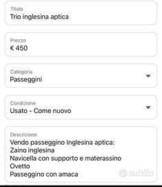 Vendo passeggino Inglesina aptica: