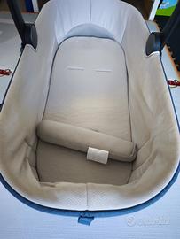 Vendo trio Inglesina Aptica usato, acquistato circa 4 anni fa, completo di navicella, ovetto e passeggino. Inclusi anche Stand Up originale e copertura/sacco invernale per passeggino. Il trio è in buone condizioni generali ed è perfettamente funzionante: chiusura, ruote, freni e meccanismi sono tutti ok. Segnalo solo che il tessuto del passeggino è leggermente scolorito in alcuni punti per normale utilizzo, ma questo non compromette in alcun modo il funzionamento. Ideale per chi cerca un sistema trio di qualità a un prezzo conveniente. Ritiro a mano in zona Torrevecchia/Torresina/Boccea oppure da concordare. Prezzo richiesto: 260 euro trattabili Descrizione: APTICA System Quattro è il sistema modulare “quattro-in-uno” di Inglesina pensato per accompagnare il bambino dalla nascita fino ai 22 kg (circa 4 anni). Ideale per genitori che cercano praticità, eleganza e alte prestazioni, garantisce continuità tra casa, auto e passeggiate quotidiane, offrendo sempre un ambiente sicuro, confortevole e igienico per il bambino. La Grande Culla Open Up La culla Open Up offre un ambiente ideale per i primi 6 mesi di vita. Con dimensioni interne di 79 × 37 × 22 cm, assicura spazio e comfort ottimali. È dotata di cinque finestre di aerazione indipendenti per una termoregolazione ottimale e visibilità a 360°. Il fondo è ventilato con fori integrati, lo schienalino è reclinabile in più posizioni, e la capotta in tessuto UPF 50+ ha un frontalino estraibile. Il rivestimento è sfoderabile e lavabile. Leggera (solo 4,4 kg), è omologata per l’auto con Kit Auto opzionale e dispone di indicatori di corretto aggancio. Welcome Pad® e materassino: benessere ergonomico per il neonato Incluso nella culla, il Welcome Pad®, sviluppato con neonatologi, accoglie il neonato simulando l’ambiente uterino. Favorisce la posizione supina e riduce il rischio di plagiocefalia. Il materassino in fibra di bambù con tessuto 3D ha 40 fori di aerazione, ed è sfoderabile e lavabile.