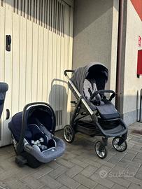 Vendo trio inglesina aptica jeans , inserti blu Completo di navicella con due materassini all’interno, ovetto e passeggino.
