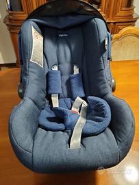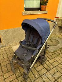 Colore blue jeans. In dotazione ci sono ovetto, navicella con materassino aggiuntivo, passeggino e borsa.