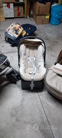 Trio inglesina completo di passeggino, navetta,ovetto con base,borsa abbinata da agganciare al passeggino,materassino per navetta, copertina navetta e ombrellino parasole