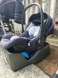 Trio Inglesina modello 'Otutto' composto da navicella/culla con supporto, ovetto con base fissaggio rapido per auto e passeggino fronte mamma/strada con copertura copri gambe. Borsa cambio. Buone condizioni. Navicella mai usata, come nuova.