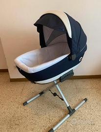 Il telaio in alluminio con chiusura a ombrello salva spazio permette di richiudere il passeggino con una mano e con la seduta inserita. Con un semplice click si può inserire la navicella, il seggiolino o il passeggino. Navicella: Per garantire maggiore comfort del neonato, la culla da passeggio con pratico maniglione da trasporto è extra large. Lo schienale è regolabile in due posizioni. La capotta della navicella ha una finestra apribile con zip per favorire la circolazione d'aria all'interno. In dotazione viene dato un comodo stand up per evitare a casa di posizionare la navicella sul pavimento. in questo modo diventa una vera e propria culla. Il passeggino richiuso resta in piedi da solo e sia il maniglione che la seduta non toccano mai per terra, per il massimo dell'igiene. La seduta è comoda e sicura con cintura di sicurezza a 5 punti integrata e reversibile fronte genitore e fronte strada per seguire il naturale sviluppo del bambino. Inoltre per favorire il comfort del bimbo durante la nanna, la seduta è completamente reclinabile e il poggiapiedi regolabile. La capotta è Full-Cover e presenta una finestra apribile con zip per la stagione calda. Il seggiolino auto omologato per il gruppo 0+ (dai 0 ai 13 kg), per una maggiore sicurezza del neonato in caso di urti laterali è dotato dell'innovativo sistema di protezione Side Head Protection, con imbottitura rinforzata all'altezza della testa e cintura di sicurezza a 3 punti integrata con cinghie con cuscinetti imbottiti. Inoltre, per favorire la corretta postura del bimbo nei suoi primi mesi di vita è in dotazione un comodo cuscinetto-riduttore ergonomico in morbida spugna. Il seggiolino auto può essere installato in auto da solo o con la pratica base che che favorisce maggiore stabilità e facilità nelle operazioni di aggancio/sgancio. Tutti i rivestimenti sono sfoderabili e lavabili a 30° Ritiro a mano, dopo visione.