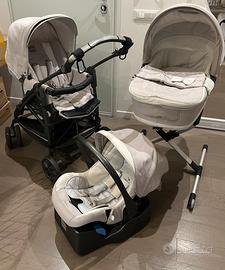Trio compelto inglesina modello “otutto” passeggino, navicella/culla compelta di materassino, ovetto compelto di base per seggiolino auto, attacco universale interscambiambile con tutti gli accessori, compelto di accessorio per posizionare all’occorrenza in casa tutti x gli accessori.