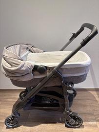 Trio inglesina dotato di telaio su cui montare la navicella, l ovetto per l auto ed il passeggino. Incluso inoltre il piedistallo utilissimo per appoggiare la navicella in casa. Usato in buone condizioni, no strappi, rotture delle parti in stoffa, no macchie, pulito e completo in tutte le sue parti