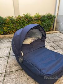 Trio composto da: Passeggino usato con scocca nuova ( anno 2024) Culla con materasso Ovetto con base auto Supporto a X per culla e ovetto