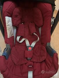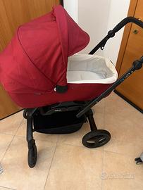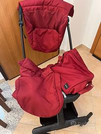 Trio composto da passeggino, carrozzina e ovetto. Colore bordeax. Ottimo prodotto. Il telaio è super resistente, ha quache graffio qua e la, ma funziona tutto perfettamente. Chiusura con una mano. Ovetto con riduttore. Borsa inglesina combinata Scalda gambe per passeggino e copertura carrozzina.