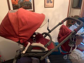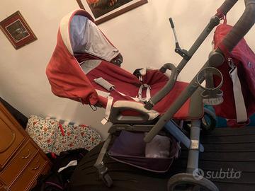 Composto da Passeggino, Culla, Ovetto con base per auto, completo di ombrello, borsa, coprigambe, impermeabile, specchio per auto e pedana per 2° figlio/a.