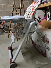 Seggiolone chicco progress con diversi utilizzi in altezza e utilizzabile anche su sedia.
