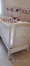 Lettino Pali con cassetto per biancheria, completo di paracolpi, cuscino lenzuolini e piumone