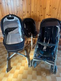 Passeggino, ovetto e culla con stand up di colore blu scuro. Prezzo trattabile