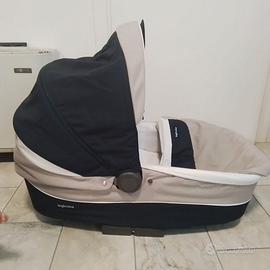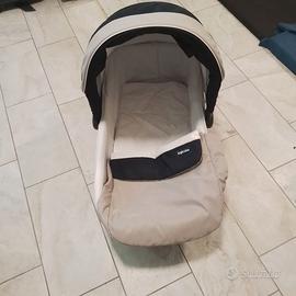 Regalo Trio completo: piedistallo per navicella/ ovetto (da usare in casa), navicella (nuovo usato 2 volte), ovetto (con riduttore in spugna), passeggino con porta oggetti rifoderato a mano, ruote anteriori nuove, parapetto rivestito a mano