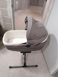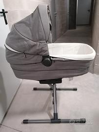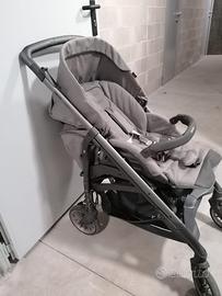 trio inglesina trilogy. colore grigio. compresa copertura per passeggino e navicella. adatto dalla nascita fino ai 20 kg. da chiuso resta in piedi da solo. tessuti sfoderabili e lavabili