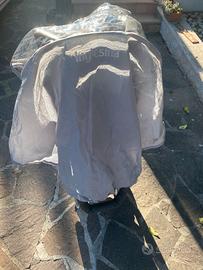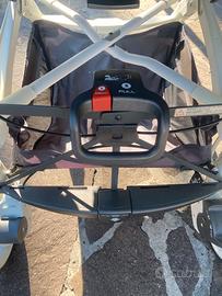 Passeggino Trilogy. - Adatto dalla nascita fino a 20 Kg (4 anni circa) - Telaio con chiusura ad ombrello con una sola mano - Guida fluida grazie ai cuscinetti a sfera sulle quattro ruote (tipo Abec 5) - Ruote con funzione piroettante e bloccabili, con comando remoto - Da chiuso resta in piedi da solo - Maniglione unito - Cestello portaoggetti - Seduta reversibile fronte strada/fronte genitore - Schienale regolabile in 3 posizioni in entrambi gli orientamenti - Poggiagambe regolabile in varie posizioni - Cappottina extra large con tessuto anti UV (UPF50+) e falda parasole a scomparsa - Finestrella osserva bimbo in rete per aerazione - Cinture a 5 punti regolabili dotate di spallacci e sparti gambe - Tessuti sfoderabili e lavabili. Tutto è stato già pulito e disinfettato e riposto nella sua scatola originale. Consegna a mano su Roma.