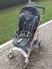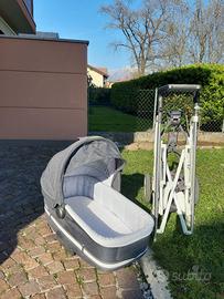 Vendo trio Inglesina Trilogy System colore Village Denim tenuto molto bene, pari al nuovo. Il trio, compatto e leggero, è composto da navicella, passeggino e seggiolino auto gruppo 0+ (ovetto) con base di fissaggio al sedile; il telaio, con chiusura ad ombrello, è richiudibile con una sola mano e una volta chiuso resta in piedi da solo, inoltre è dotato di comodo maniglione per il trasporto. Il passeggino, adatto fino a 20 kg, ha seduta reversibile fronte strada/fronte genitore e lo schienale è regolabile in 3 posizioni (in entrambi gli orientamenti). Le cappottine extra large sono dotate di finestrella osservabimbo in rete per l'aerazione. Accessori in dotazione: riduttore per seggiolino, cappottina impermeabile per la pioggia.