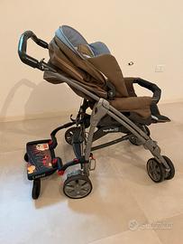 Il set comprende un passeggino con cappotta, ovetto reclunabile, navicella e stend up. In piu una pedana da attaccare nel retro del passegginio