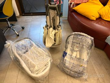 Usato pochissimo solo il passeggino, ovetto e culla forse un paio di volte. Tutto riposto in busta chiusa per evitare polvere. Tenuto tutto in modo eccellente, la borsa mai usata. Zona EUR.