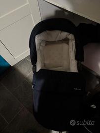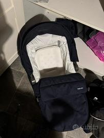 trio completo di navicella con attacchi e cinture per auto, ovetto e seduta per passeggino con parasole. Perfettamente funzionante