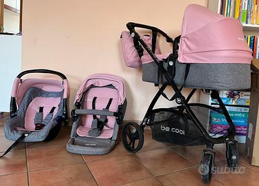 Vendesi trio Jane Be cool modello Slide, composto da navicella, passeggino posizionabile verso entrambi i lati, ovetto, pratica borsa con fasciatoio portatile e copertura per la pioggia.