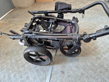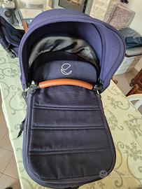 Pregio di questo passeggino è il freno al manubrio e possibilità grazie all'apertura di una cerniera di estendere capottina per proteggere neonato dal sole.