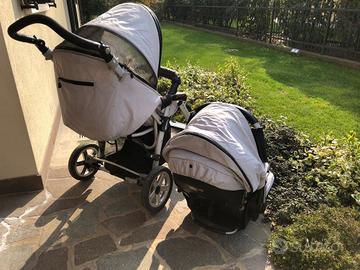 Navicella, ovetto auto e passeggino. Colore grigio perla, completo di accessori (materassino, borsa, para pioggia ...).
