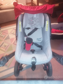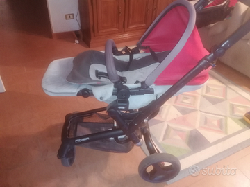 Vendesi trio Jane modello Rider, rosso e grigio, accessoriato con capottina pioggia, borsa e ombrello. Navicella con ganci per cintura auto e sistema di aerazione. Passeggino completamente reclinabile, tutto afoderabile. Ruote posteriori grandi e sganciabili, per ottima manovrabilità e riduzione ingombro da chiuso. Tutto in buono stato.