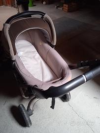 Trio JANE TRIDER Struttura con 3 ruote. Accessori intercambiabili. Carrozzina/ navetta con 2 materassini e un cuscino.Fondo regolabile e reclinabile Ovetto con riduttore omologato x auto. Passeggino sia " vista mamma" che possibilità di girarlo in avanti.