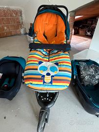Trio Janè Trider con passeggino, navetta ed ovetto omologato per trasporto in auto. Accessori inclusi: rivestimento invernale passeggino, ombrellino parasole, protezione pioggia, ganci manubrio per borse