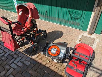 Trio Janet in ottime condizioni completo di ovetto/culla, passeggino, carrozzina. Telaio robusto adatto anche a fuori strada, ammortizzato e con ruote grandi che garantiscono maneggevolezza e versatilità. Ottimo per facilità di utilizzo e poco spazio occupato. Buone condizioni, no fumatori e no animali domestici. Le spese di spedizione sono indicative trattandosi di diversi colli ingombranti.