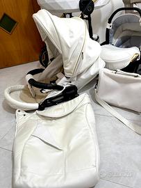 Vendo Trio Junama Diamond in pelle bianco, comprato novembre 2024 e pagato 1470€. Completo di tutto: navetta, telaio, vostro, passeggino, borsa, come riportato in foto, mai usata zanzariera e para pioggia. Piccolissimi graffietti in basso al telaio, visibili solo a distanza ravvicinata. Tutto completamente sfoderabile e lavabile. Contattare al numero 3450463694