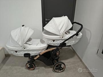 Vendo trio Junama DIAMOND + GRATIS STRUTTURA SINGOLA. Utilizzato per pochi mesi in ottime condizioni. IN REGALO: -riduttori per ovetti. -zanzariere per ovetto, navicelle e sedute. -basi per agganciare ovetti in auto con isofix o cinture. -STRUTTURA PASSEGGINO SINGOLO nel caso in cui servisse uscire con un solo bimbo. Caratteristiche struttura: Robusta e stabile, con sacca portaoggetti lavabile e staccabile. -manico regolabile in più di 10 altezze. -ammortizzatori su ruote adatte ad ogni tipologia di terreno (quelle anteriori sono rotanti a 360 gradi con possibilità di bloccarle in direzione e di rimuoverle per una chiusura più compatta. -freno. -utilizzabile per gemelli o fratelli grazie alle innumerevoli posizioni e composizioni. Caratteristiche NAVICELLE: -comode e spaziose. -cuscino anti soffocamento. -schienale interno regolabile antireflusso. -cappottina con zanzariera. -coprigambe con chiusura totale + cerniera per aprire solo in parte con "finestrella per osservare il bambino". Caratteristiche OVETTI: -Cinghie regolabili a tre chiusure con imbottiture morbide. -riduttori. -coprigambe. -cappottina removibile. Caratteristiche SEDUTE: -Schienale reclinabile. -poggia piedi regolabile in altezza e lunghezza. -Cinghie regolabili con chiusura a 5 punti. -Cappottina regolabile con zanzariera e coprigambe. Tutto completamente sfoderabile e lavabile per un'ottima pulizia e sanificazione. DISPONIBILITÀ per ulteriori informazioni e foto.