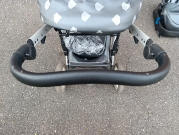 La borsa e la parte bassa del passeggino sono un po' screpolata, come si può vedere in foto,a per il resto è perfetto e completo di tutti gli accessori incluso copri pioggia e zanzariera.