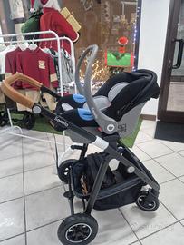 Questo è un set completo 3in1 che vi accompagna dalla nascita fino all'età prescolare. Combina una navicella sicura, un seggiolino auto premiato nei test e un passeggino funzionale. Grazie ad esso siete pronti per ogni situazione – dal primo viaggio dall'ospedale, attraverso le passeggiate quotidiane, fino al momento in cui il passeggino diventa superfluo.