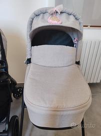 Vendo trio mibb samya, composto da navicella con coperta, materassino e struttura d'appoggio per utilizzarla in casa, ovetto, passeggino con coperta utilizzabile fino ai 4 anni, rete di copertura per zanzare e borsa