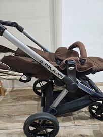 Trio Muum by Jane' Matrix light 2 composto da passeggino completamente reclinabile con cappottina e ombrellino e da navetta dotata di copertina(con un bottone da ricucire) e cappottina che si trasforma in ovetto,diciamo un trio compatto.In buono stato,ruote consumate ma vanno ancora bene e qualche segno di usura sul maniglione.Regalo moschettone per appendere la borsa.Il trio e' stato lavato e disinfettato prima della pubblicazione dell'annuncio.