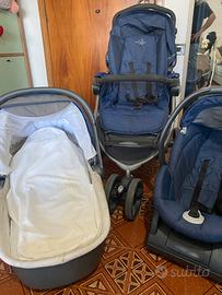 Vendo trio peonato con navicella ovetto con base per usarlo come seggiolino auto e passeggino tutto smontabile e pieghevole, sfoderavile e lavabile