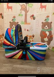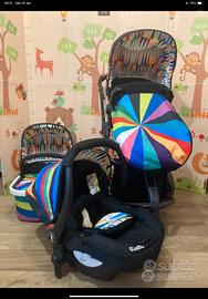 Trio Cosatto Giggle 2 Go Brightly Facilmente trasformabile da Navicella a Passeggino o Seggiolino auto gruppo 0+. 4 posizioni di reclinazione della seduta del passeggino, fronte strada e fronte mamma. Parapioggia e coprigambre reversibile. In regalo ulteriore materassino per la navicella e copri-seduta per passeggino in spugna( ottimo per i mesi più caldi). Prezzo trattabile.